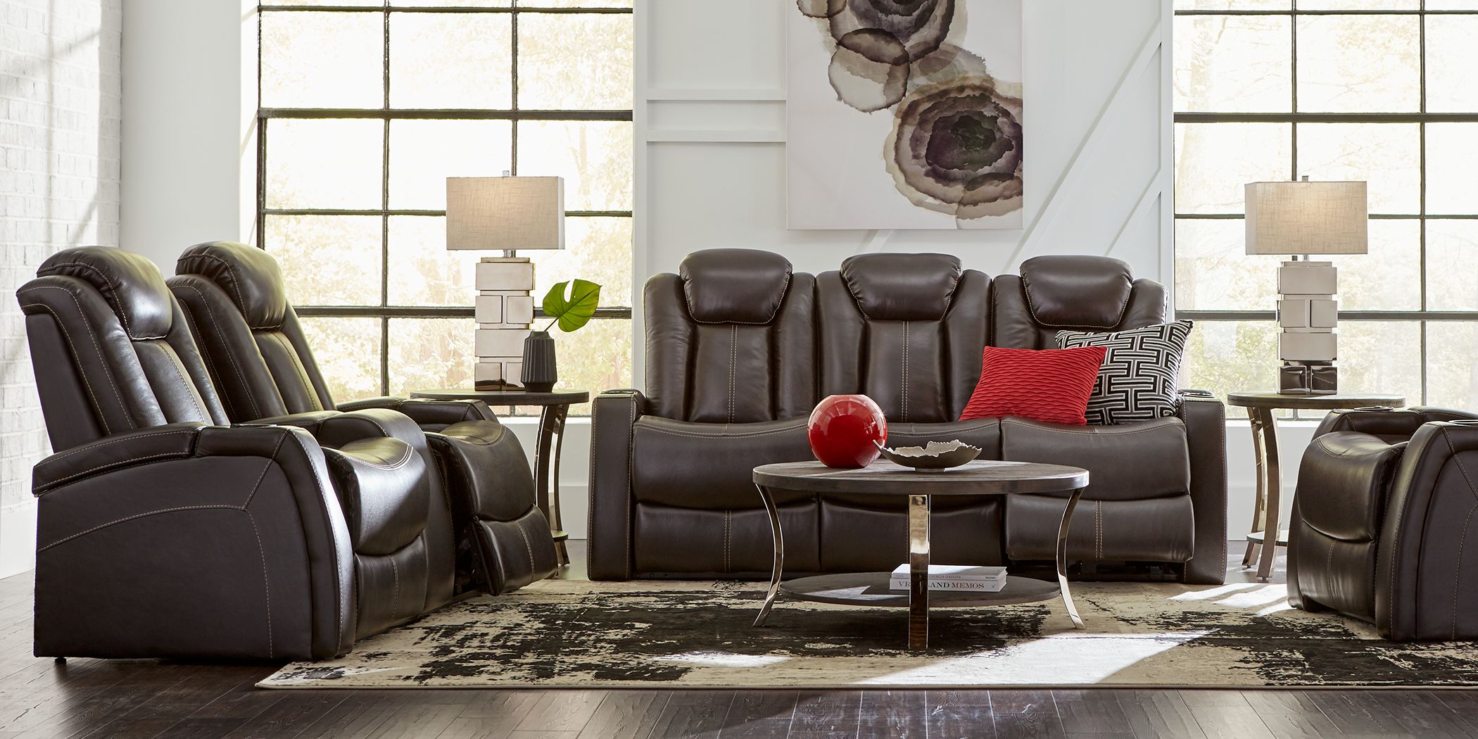 Moretti brown leather dual top power reclining sofa, Moretti Brown Leather 5 Pc Dual Power Reclining Living Room top
