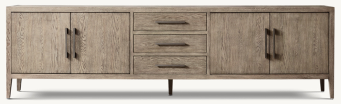 Rh modern media top console, French Contemporary 4 Door Media Console with Drawers top