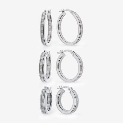 Sterling silver hoop earrings top set of 3, FINE JEWELRY Sterling Silver Glitter 3 Piece Hoop Earrings Set top