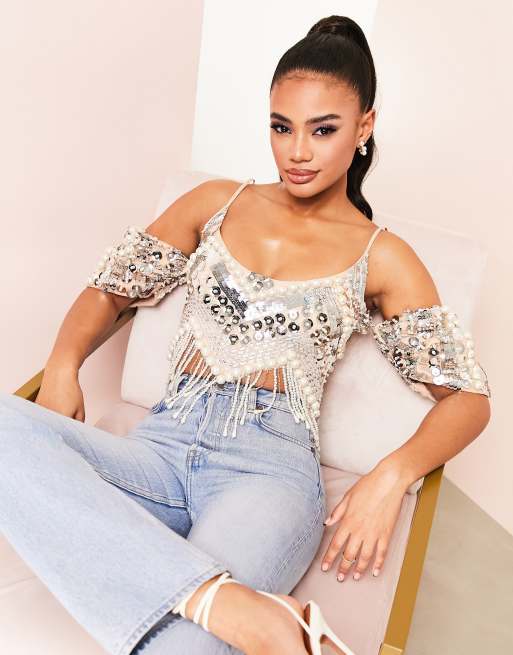 Top jewels top, ASOS LUXE embellished cami crop top with draping jewels top