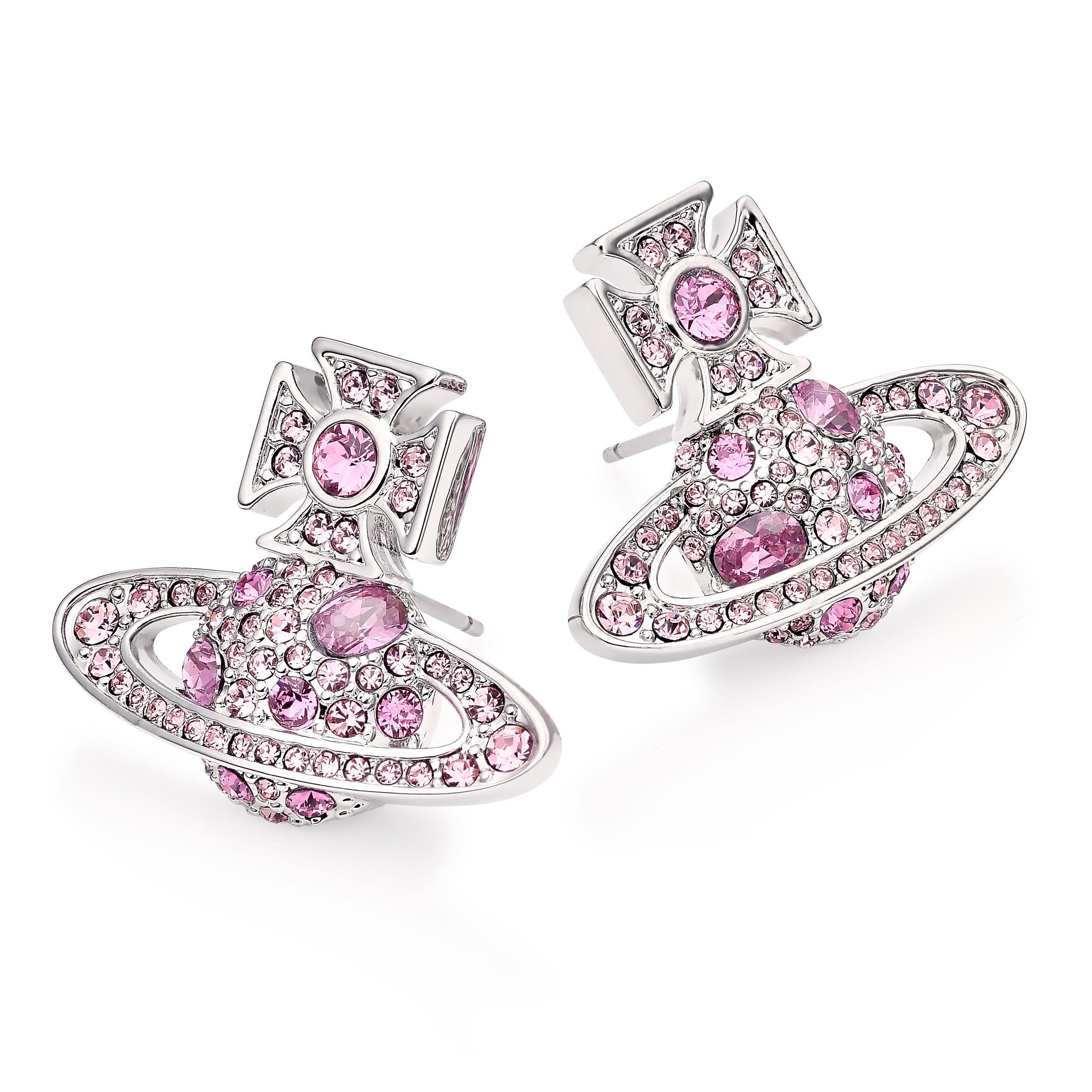 Vivienne Westwood White Metal Pink Crystal Earrings 0139929