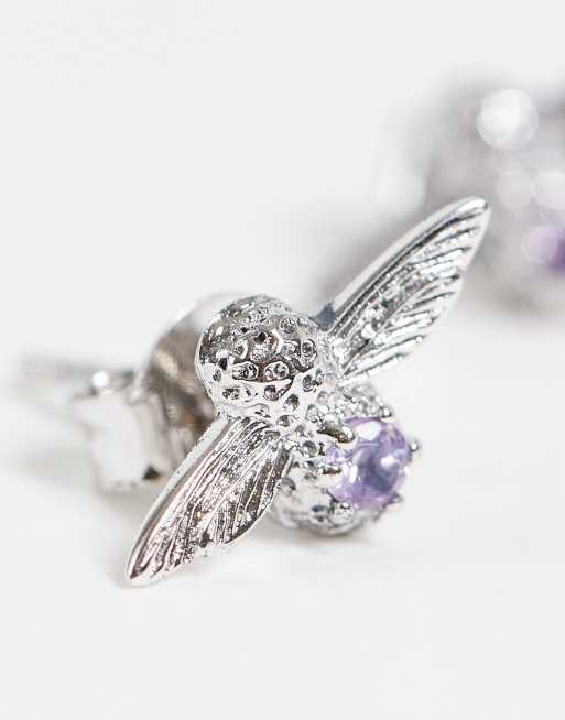 Olivia Burton silver bee amethyst bracelet with jewel details
