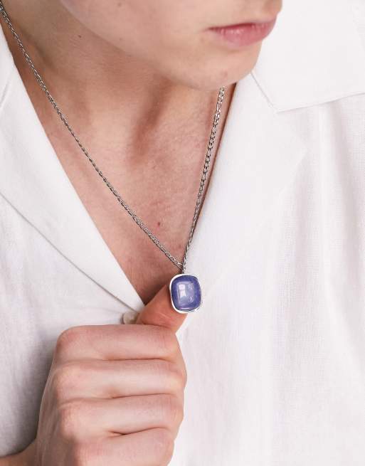 - silver necklace with blue stone