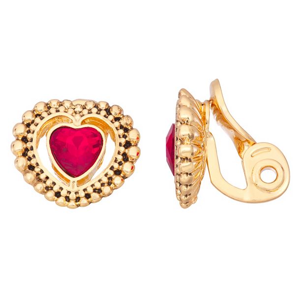 Napier Red Faceted Heart Clip On Earrings