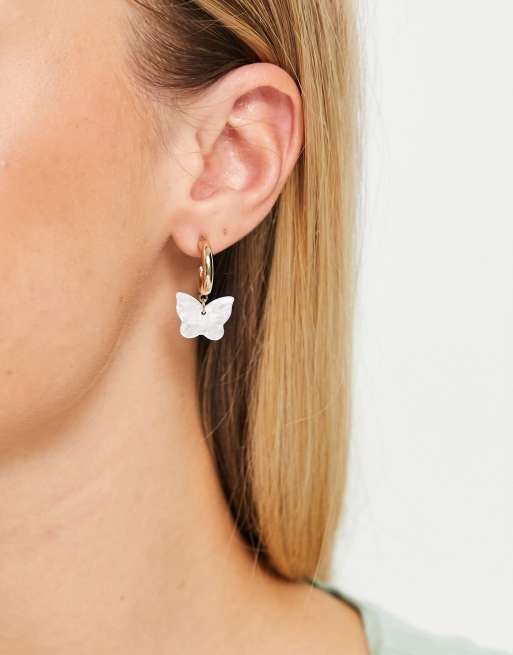 Butterfly charm drop top earrings, Topshop white butterfly charm drop huggy hoop earrings in gold top