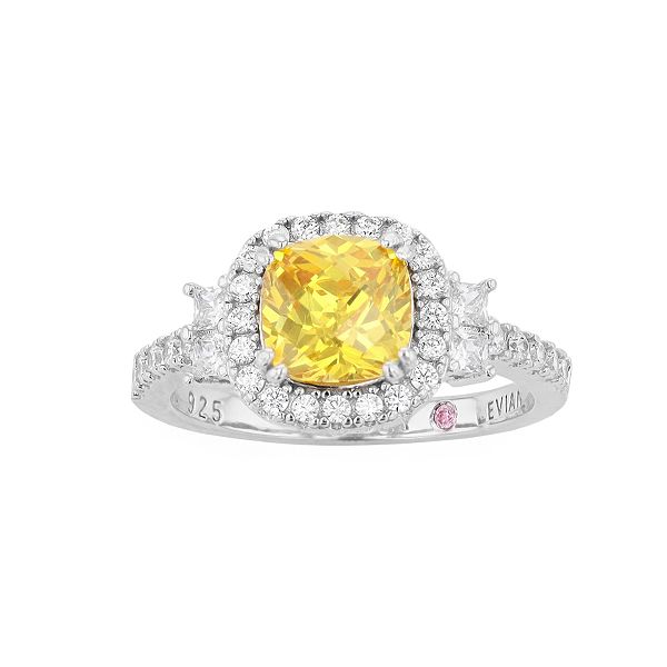SLNY Sterling Silver Yellow Cushion Cut Cubic Zirconia Engagement Ring
