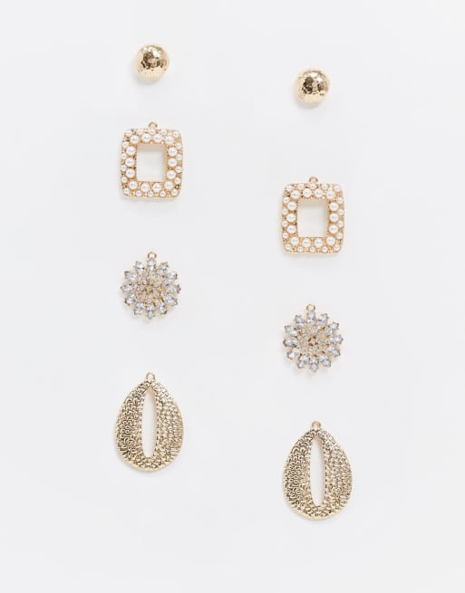 ASOS DESIGN interchangeable earrings with textured stud and glam drops in gold tone