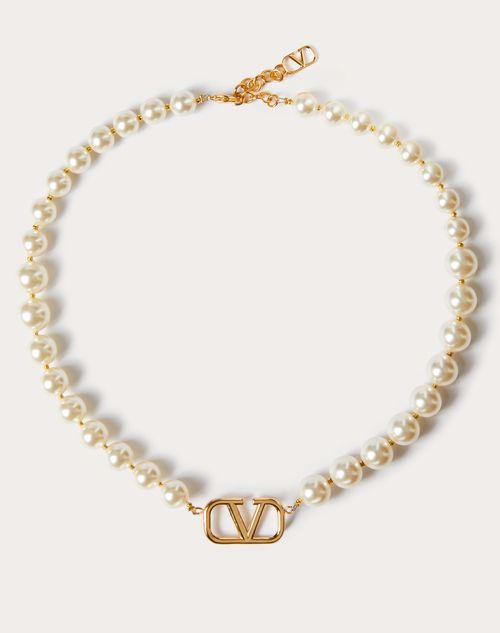 Valentino top pearl bracelet, Vlogo Signature Metal Necklace With Swarovski Pearls for Woman in top
