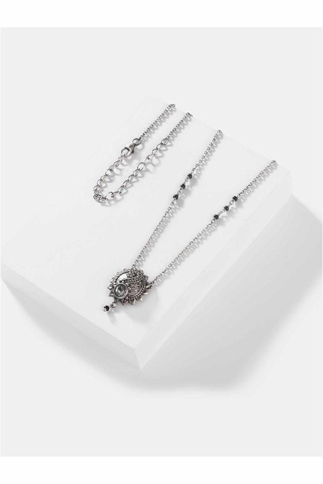 Caratlane black beads top chain, Yin Yang Black Beads Necklace in 925 Silver top