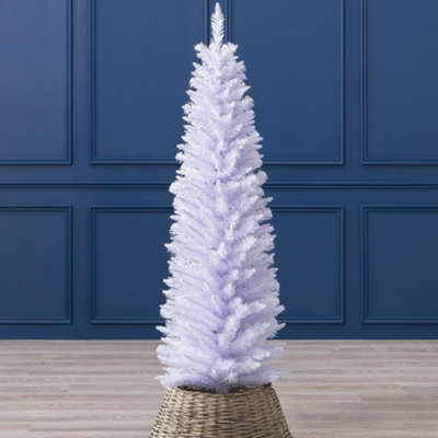 White Christmas Tree Artificial Slim Pencil Spruce with Stand