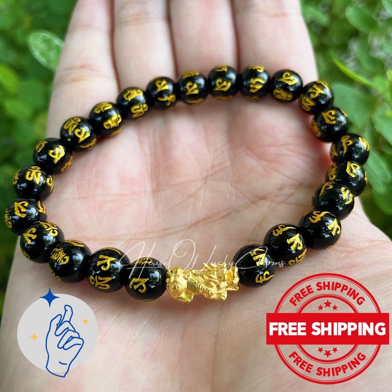 24k Gold Piyao Lucky Charm with Black Mantra Stones Assorted