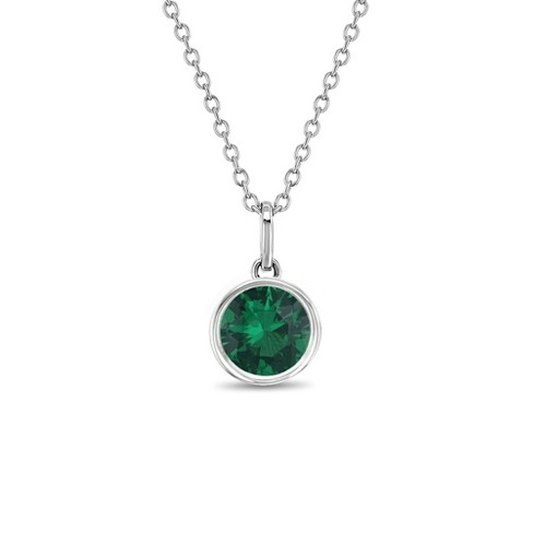 Girls Birthstone Cubic Zirconia Sterling Silver Necklace Green