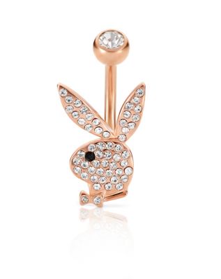 Rose Goldtone Clear CZ Playboy Bunny Belly Ring 14 Gauge Spencer s