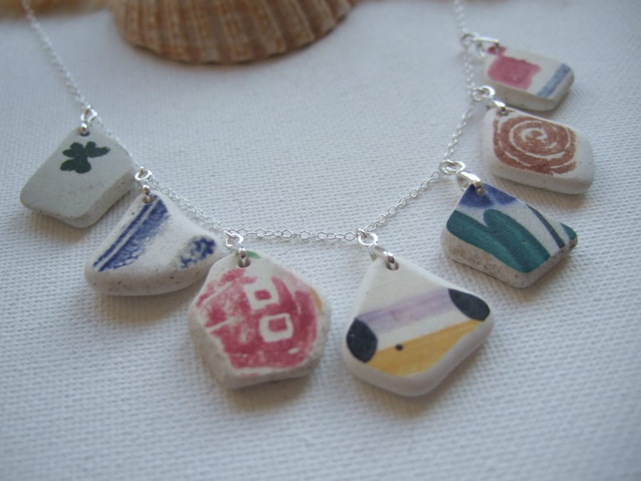 Sea top pottery jewellery, Scottish sea pottery necklace colourful beach pottery jewelry 18 top