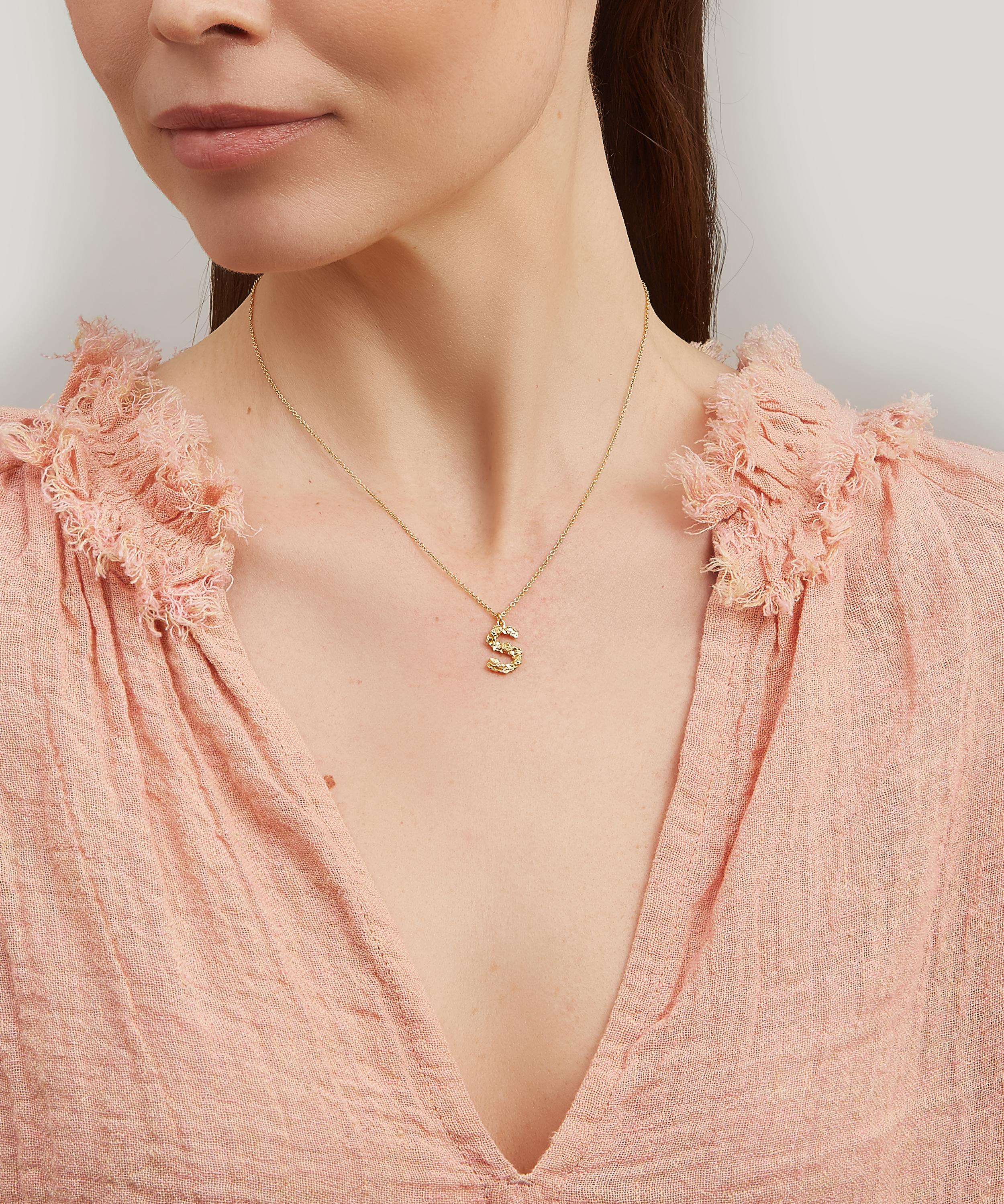Alex Monroe Gold Plated Floral Letter S Alphabet Necklace Liberty