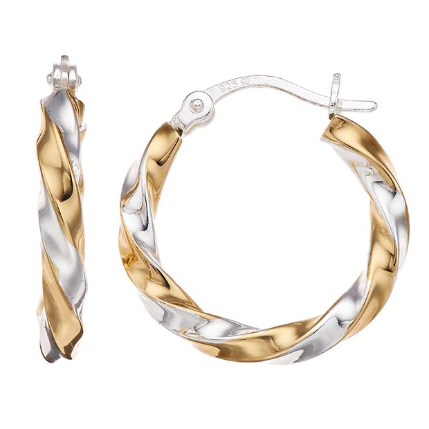 9ct Yellow Gold Silver Filled Two Tone Twist Hoop Earrings