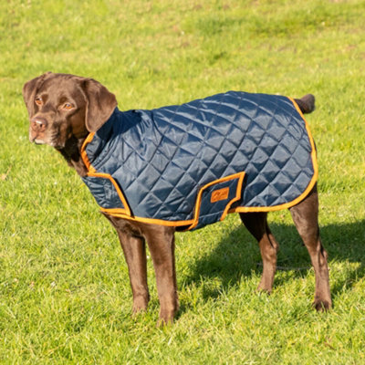 Benji Flo Quilted Leather Bound Dog Coat Navy Tan XS DIY at B Q