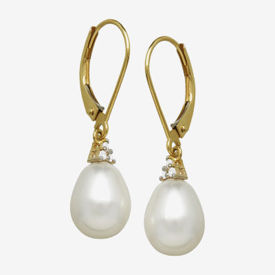 Diamond Accent White Cultured Freshwater Pearl 10K Gold Drop