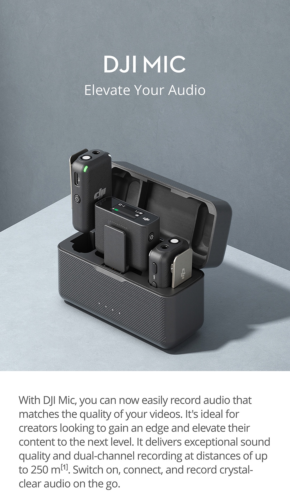 DJI Mic 1 TX 1 RX Wireless Lavalier Microphone 250m 820 ft. Range Compact and Ultra Light 14 Hour Recording Wireless Mic for PC iPhone
