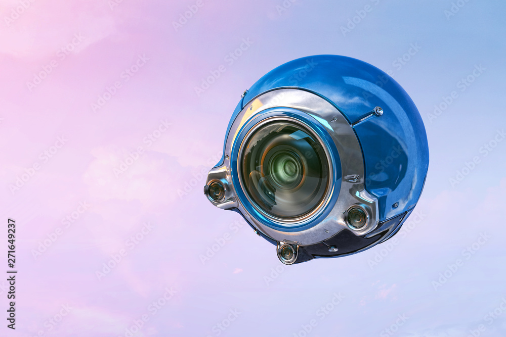 Flying robot with top camera, Robot spy bot drone with camera flying photographing filming top
