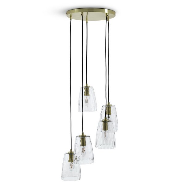 5 cluster pendant top light, Buy Habitat Webb 5 Light Cluster Pendant Glass Brass Ceiling top