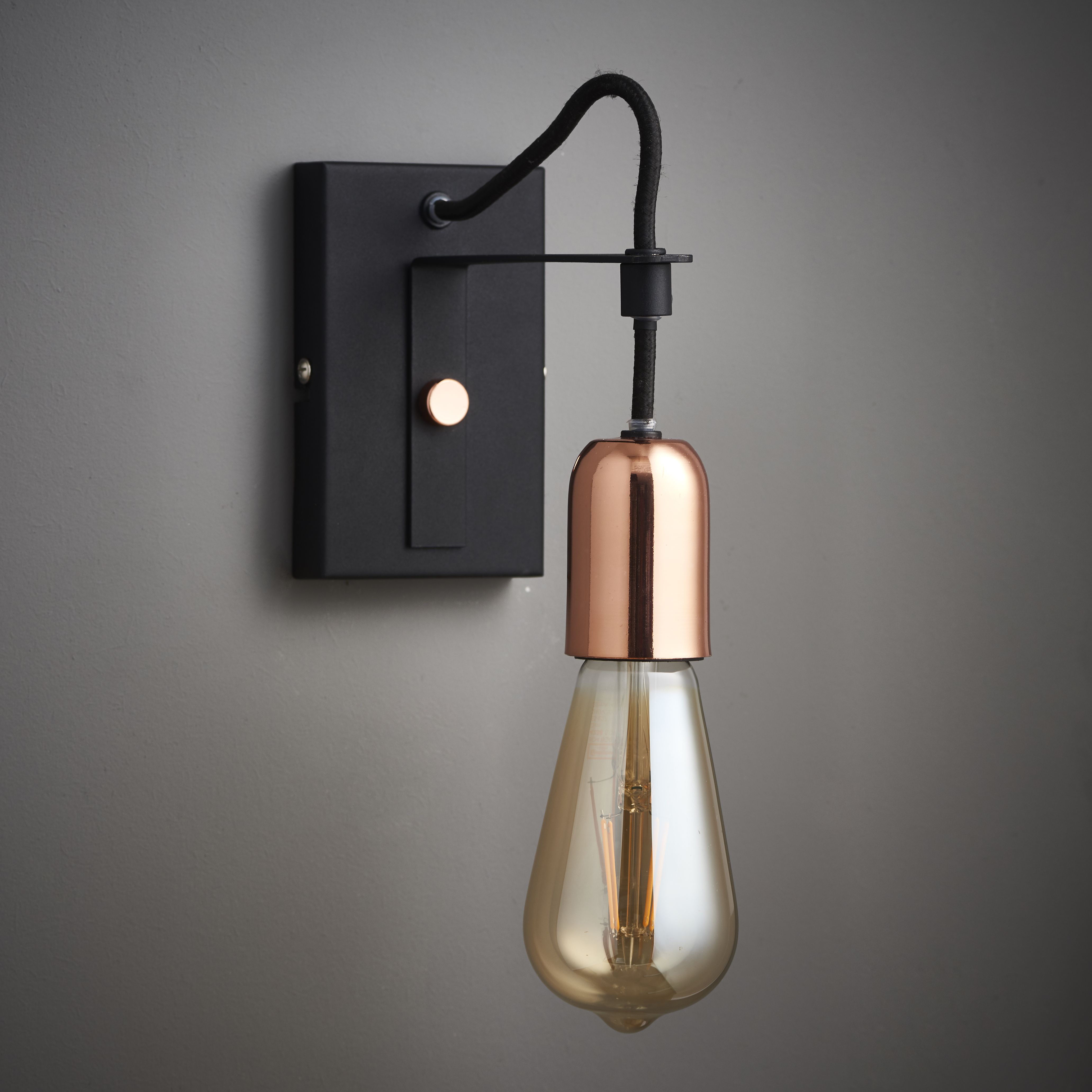 Copper wall top light with switch, Colours Detroit modern Black Copper effect LED Wall light DIY at B Q top