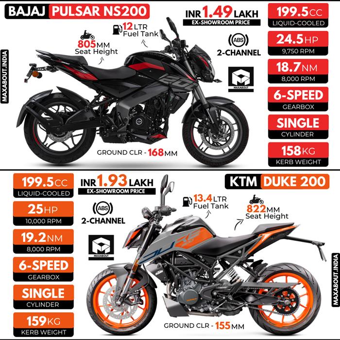 Maxabout KTM Duke 200 vs. Bajaj Pulsar NS200 Specifications