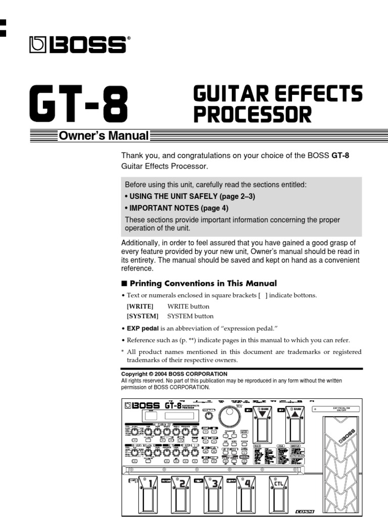 Boss gt top 8 loop function, GT 8 Manual PDF Electromagnetic Interference Ac Power Plugs top