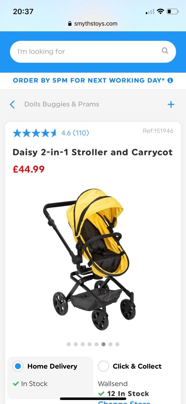 Smyths top yellow pram