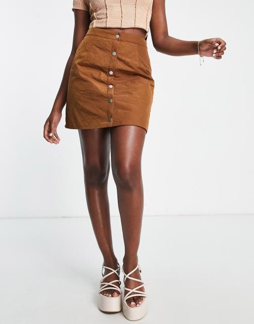 Synchronise Burnt Orange Button Up Mini Skirt Club L London USA