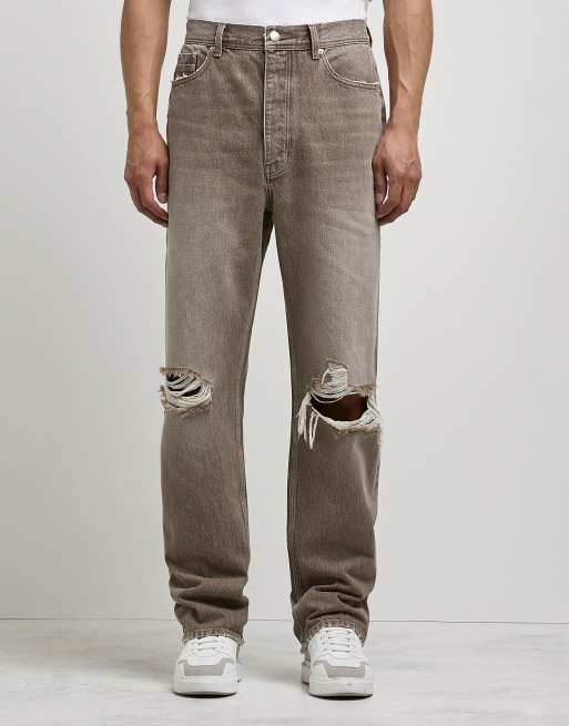 Brown top ripped jeans, Summer Baggy Ripped Jeans Men Fashion Brown Black Straight Jeans top